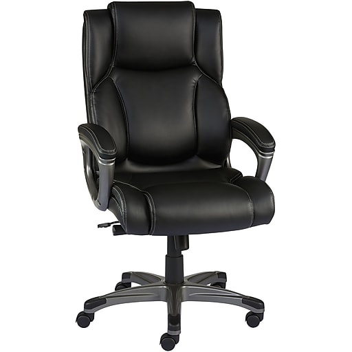 Width big and tall black bonded leather executive chair with adjustable height. Check out our leather office chair selection for the very best in unique or custom, handmade pieces from our furniture shops. Office chair ergonomic desk computer kulik system trio eco leather. Adiroffice black faux leather swivel adjustable desk office computer chair. Executive office chair computer gaming home swivel adjustable leather black. Find all office chairs at wayfair. Colourful reds and blues offer a casual and cheerful vibe while deep dark brown's and black's serve as a message of professionalism and authority. Richly upholstered fabrics with polished chrome trims add a contemporary touch to your environment, while generous seats and backrests provide you with extra sitting space. It signals the type of office environment you are creating. High back office chair made with black leather upholstery. Get the best deals on leather office chairs. Black bonded leather managers chair with quilted and chrome accents. Buy leather executive office chairs for your workspace now!